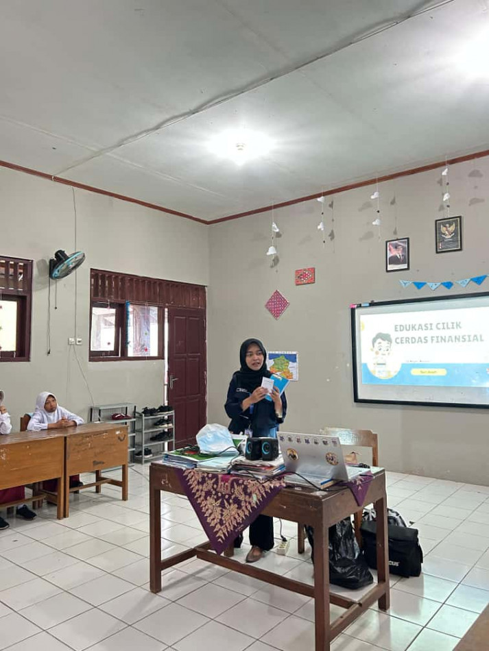Agar materi mudah diterima, kegiatan ini dikemas dengan metode interaktif dan menyenangkan. Sesi belajar dilengkapi dengan media visual, cerita pendek, serta simulasi menabung menggunakan “celengan impian” di mana siswa menuliskan target kecil yang ingin mereka capai melalui kebiasaan menabung. Cara ini bukan hanya membuat anak-anak lebih terlibat secara aktif, tetapi juga membantu mereka membangun hubungan emosional dengan tujuan finansial yang ingin mereka raih. Sejumlah siswa tampak bersemangat berbagi pengalaman pribadi tentang cara mereka menabung di rumah dan kendala yang sering mereka hadapi.